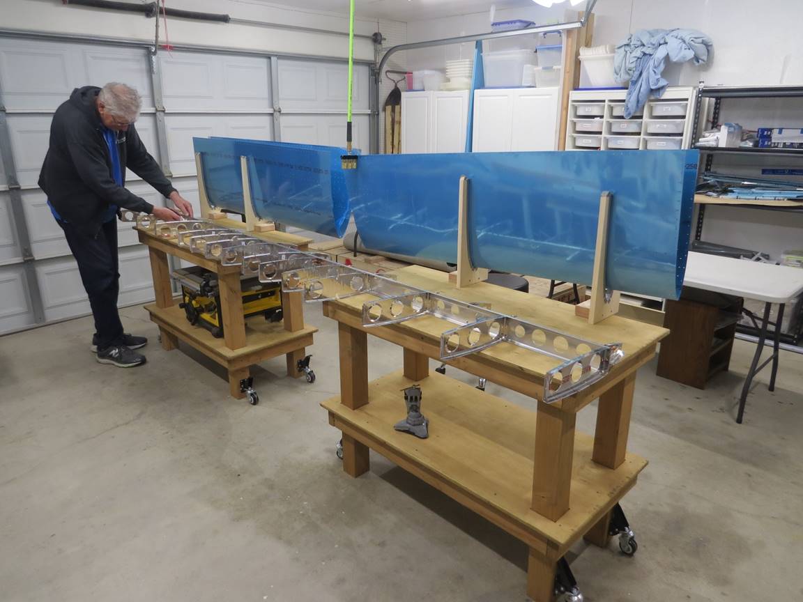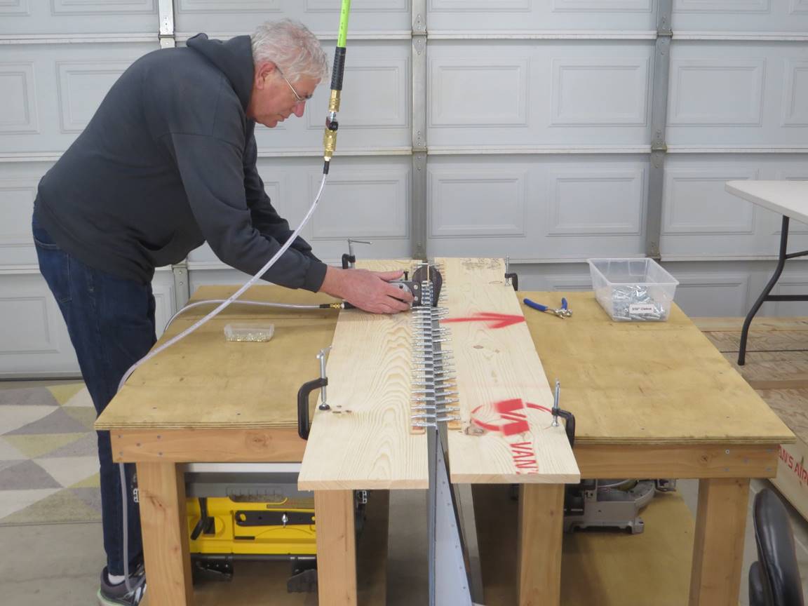 · Tom working on the skeleton for the horizontal stabilizer.