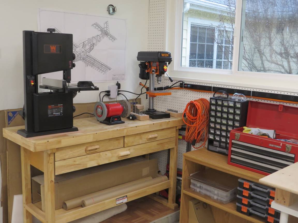 · The tools on the shelf above the workbenches are from Cleaveland Aircraft Tools. I bought their RV-10 tool kit package
