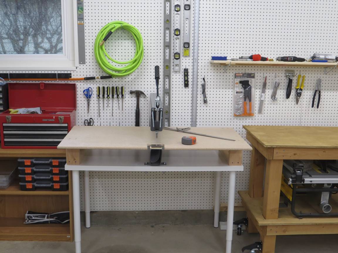 · To the right of the folding table (barely visible) is the most used tool that I have – my shop vac from Home Depot
