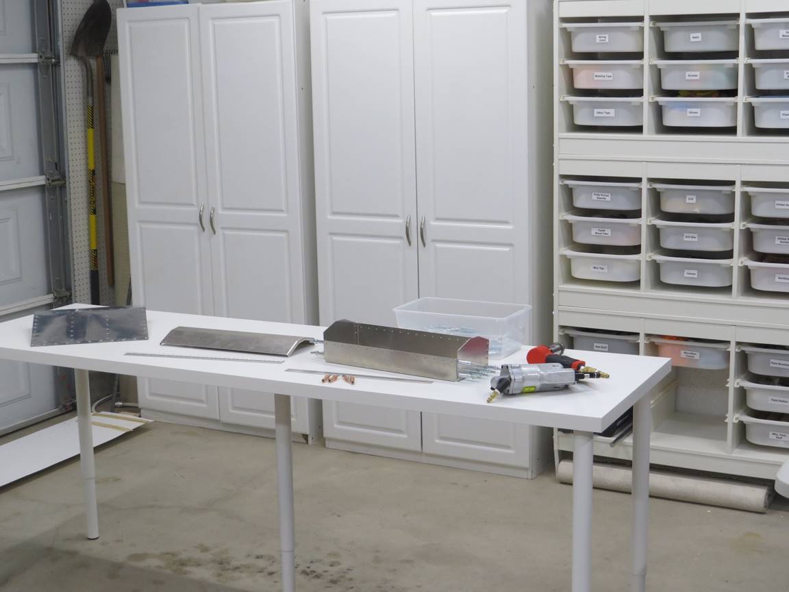 · 3 steel storage shelves from Home Depot. One shelf each for Horizontal Stabilizer, Vertical Stabilizer, Fuselage, Elevator, Rudder, and Other.